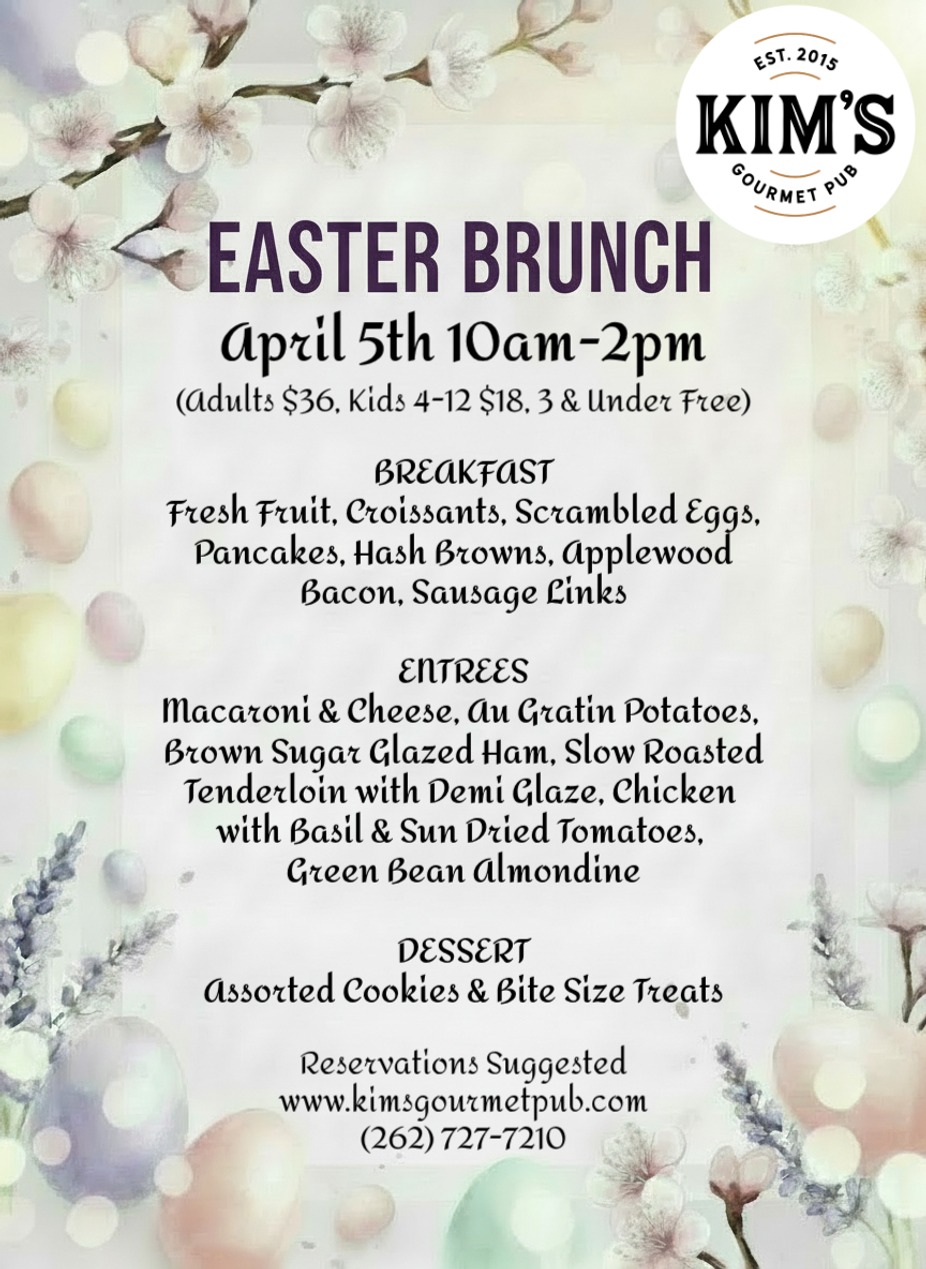 10am-2pmEaster BrunchSunday, April 5th, 2026